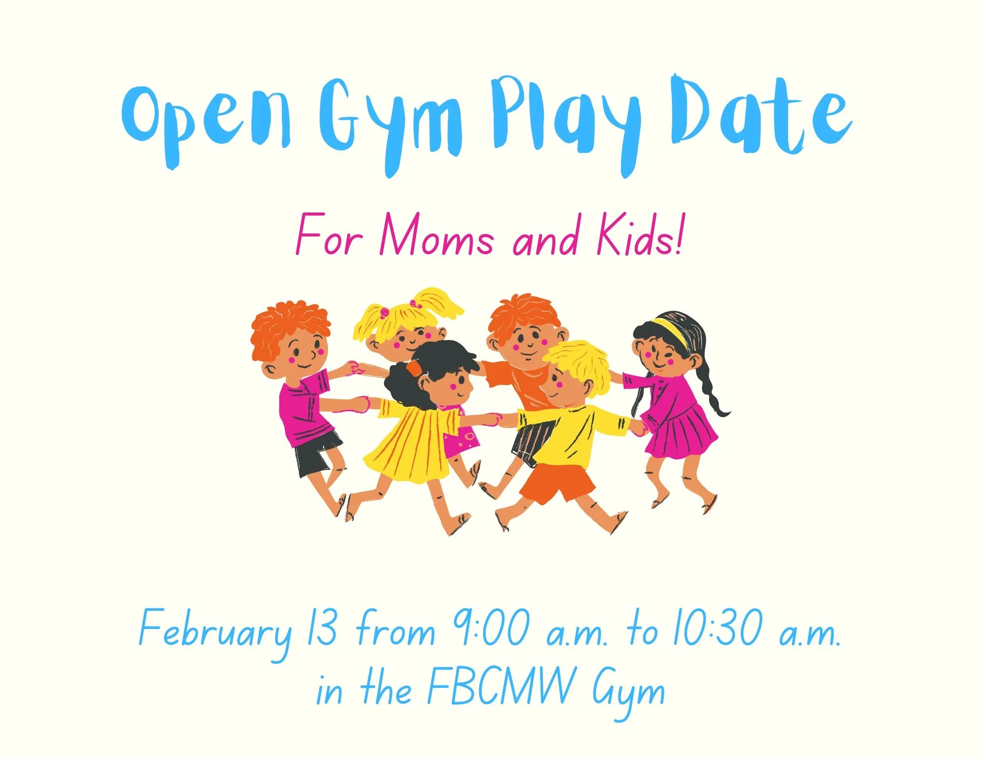 OPEN GYM PLAY DATE For Moms and Kids! February 13, 9:00 a.m.-10:30 a.m. FBCMW Gym